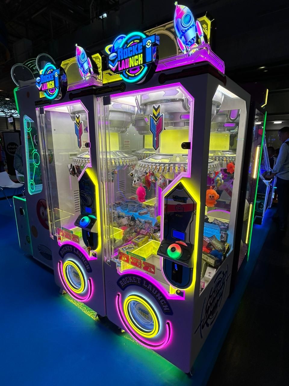 Cu iluminare LED multicoloră spectaculoasă și spațiu dedicat pentru expunerea premiilor, aparatul creează un adevărat spectacol vizual în orice locație. Datorită varietății de opțiuni pentru afișarea premiilor, Rocket Launch este atractiv pentru întreaga familie.
