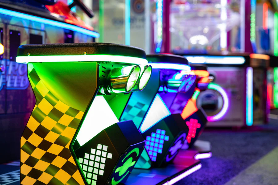 Iluminare RGB vibrantă și sunet de start al cursei, care atrag vizitatorii din toată locația