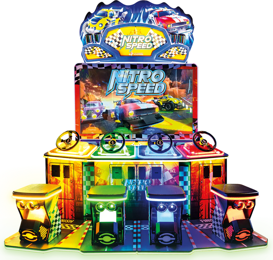Pornește nitro-ul și luptă cu alți trei prieteni pentru gloria câștigării de tichete — Nitro Speed aduce patru volane alăturate în fața unui singur ecran HD uriaș, permițând piloților să derapeze prin canioane deșertice, străzi de oraș luminate cu neon și munți acoperiți de gheață, apăsând butonul de boost pentru o depășire decisivă pe ultima sută de metri. Un sistem integrat de photo finish, clasament și jackpot progresiv menține orgoliile (și dorința de replay) la cote maxime pe tot parcursul zilei.