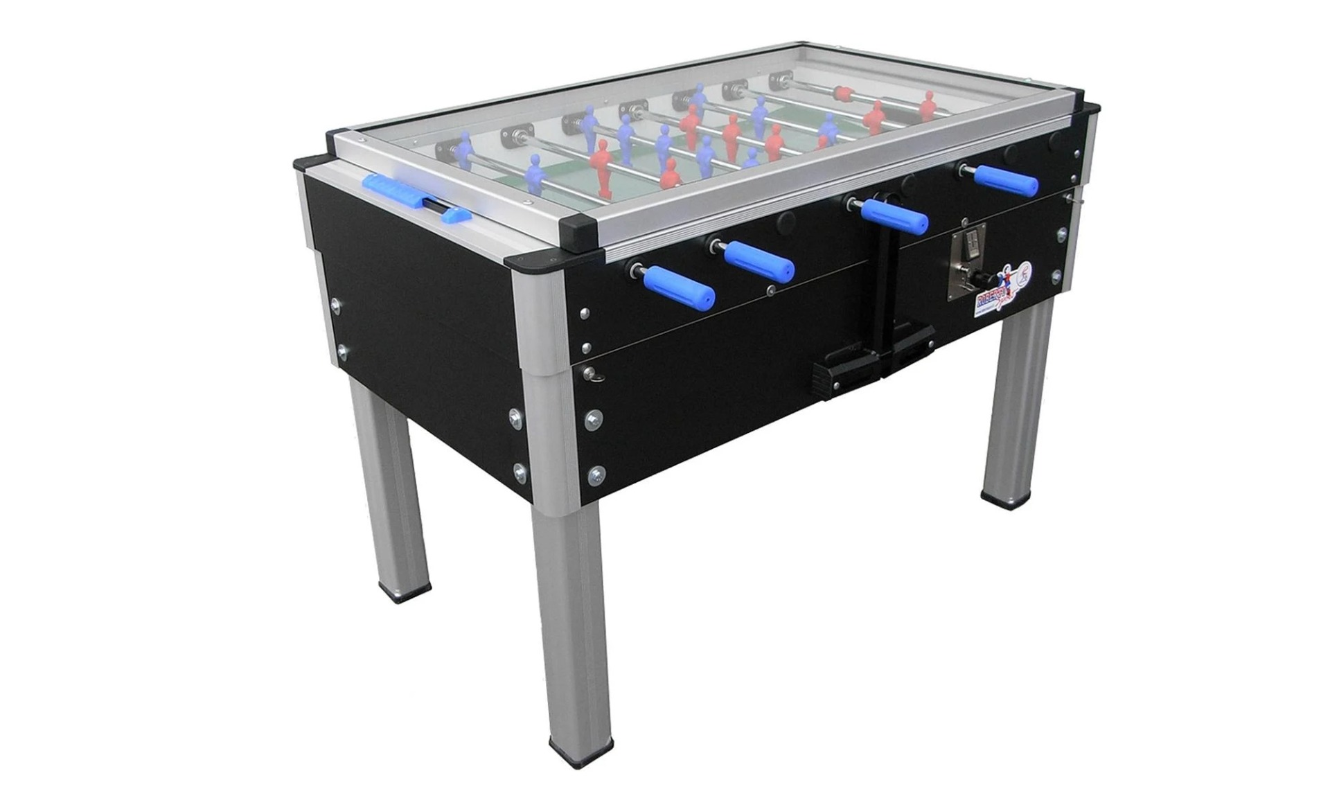 Iluminarea LED integrată pune în valoare masa și creează un efect vizual spectaculos, ideal pentru spații moderne și ambiente cu lumină redusă. Pentru proprietarii de locații, masa Roberto Sport cu LED înseamnă un punct de atracție puternic pentru clienți, un design contemporan care se integrează ușor în orice decor și o construcție gândită să reziste ani de zile, cu costuri minime de întreținere. Pentru jucători, LED-urile asigură vizibilitate excelentă asupra mingii și a jucătorilor, cresc dinamismul și intensitatea fiecărui meci și transformă jocul într-o experiență memorabilă, atât pentru amatori, cât și pentru pasionații de foosball.