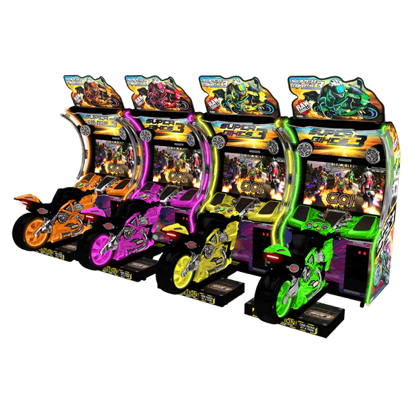 Raw Thrills prezintă cea mai nouă iterație a celei mai profitabile francize de curse pe motocicletă din toate timpurile: Super Bikes 3™. Regândit complet de la zero, Super Bikes 3™ vine cu un cabinet complet nou, cu un design mai îndrăzneț și mai agresiv. Cu 8 piste complet noi și 8 motociclete tunate, Super Bikes 3™ va revitaliza locațiile și va impulsiona veniturile.